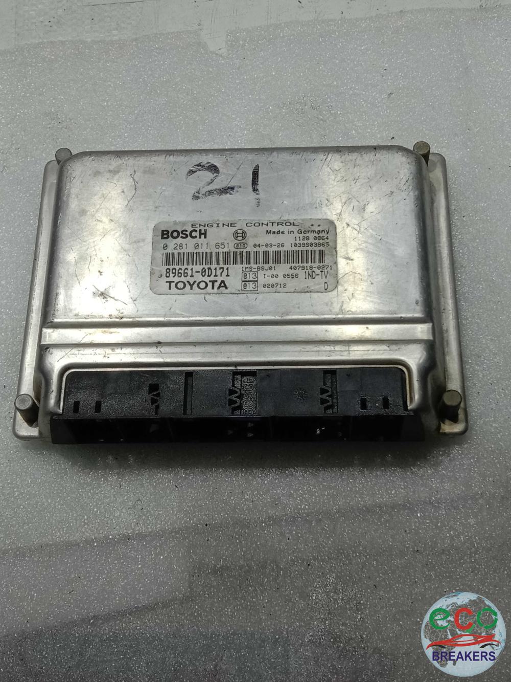 TOYOTA YARIS MK1 NLP10R FC11 T2 D-4D 53 REG 74BPH ENGINE CONTROL UNIT ECU 1.4 1364 CC DIESEL 1ND-TV / 1NDTV 5 SPEED MANUAL 3 DOOR HATCHBACK